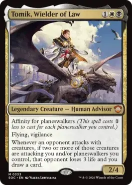 The other problem is that a lot of the best cards in our deck, most importantly our commander, Killian, Decisive Mentor, scales up in power the more we lean into the Aura part of the deck: more Auras mean more Killian triggers, the more mana advantage from Starfield Mystic, the more draw from Sage's Reverie, etc. But basically nothing scales up by focusing on more Political cards -- if anything it's the opposite, as adding more "don't attack me" cards makes pre-existing ones like Tomik, Wielder of Law less impactful.