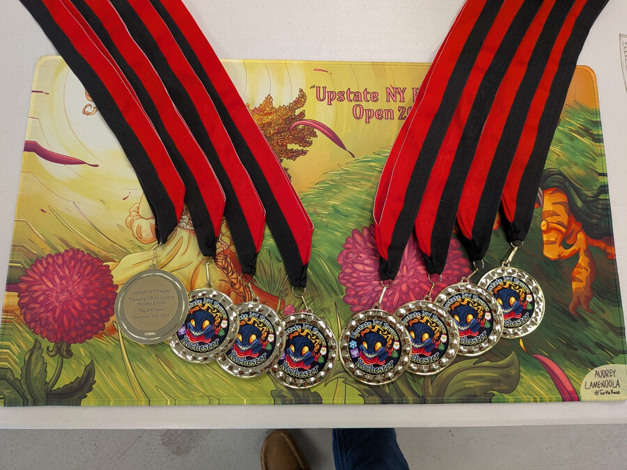 This past weekend was the Upstate NY Pauper's Holiday charity tournament, held in Rochester, NY at The Game Cave. As part of the entry, attendees also brought non-perishable food items to donate in order to support local food banks during the holiday season, which is super awesome. They had about 23 people it looks like from the Spicerack page, which is a solid charity tournament turnout. The event even had some really cool custom medals that were awarded to the Top 8 finalists.