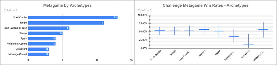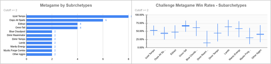 Izzet Tempo was the most played deck here and it had a pretty reasonable win rate. Omni-Tell had a strong performance here, while Oops had a less than 50% win rate.