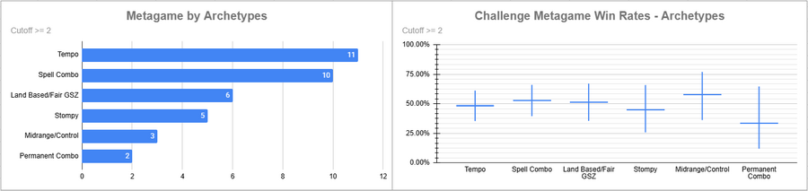 Izzet Tempo was very popular and it also had a pretty strong win rate. Lands also did very well here, while most everything else rode the middle or just below.