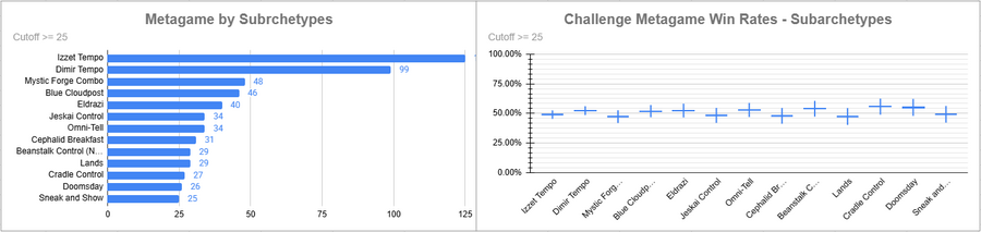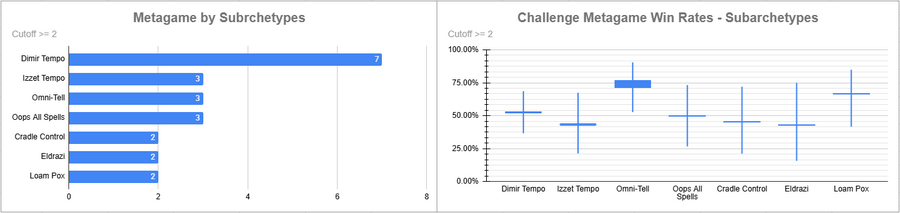 Dimir Tempo was very played, and its win rate was good, but not as good as Omni-Tell's (albeit with three players). Loam Pox also looked good.
