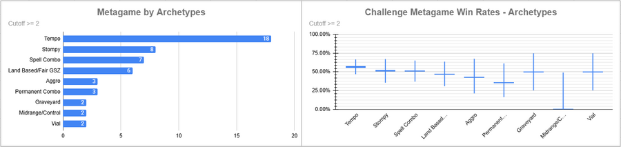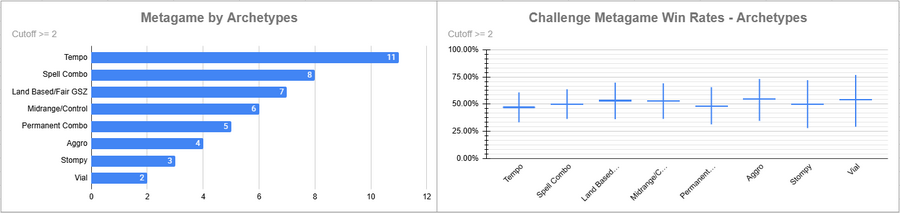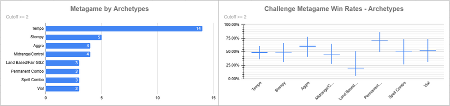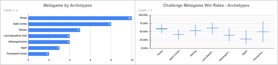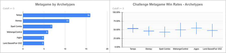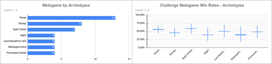 Dimir Tempo was again the most played deck, and it had a very good win rate overall. Izzet was also popular, but its win rate was very bad.