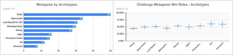Dimir Tempo was the most played deck yet again and it didn't really do fantastic, despite two copies in the Top 8. Beans did very well and so did Lands, as well as D&T.