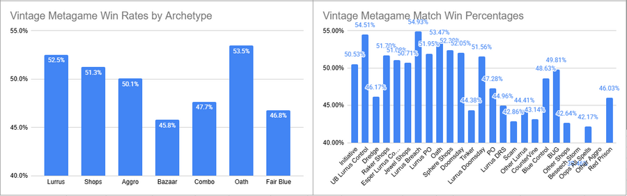 Oath at the moment seems pretty comfortable at a 53.7% non-mirror win rate. I don't think there's any real issues with this deck, and it seems like just like any deck in Vintage, it has its good events and bad events.