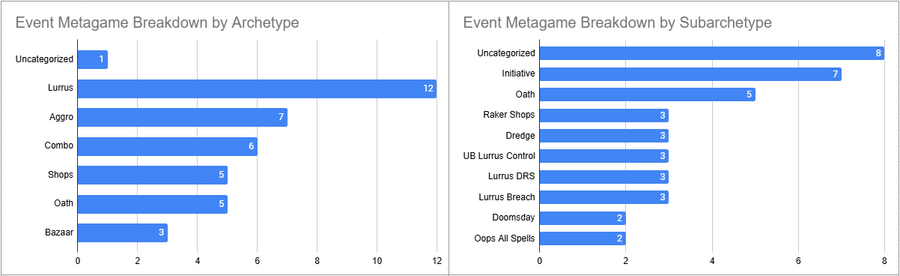 Initiative was the most played deck of the event, and it had a reasonable win rate. Oath did too, as did Lurrus decks of differing varieties. Dredge did not do well at all here.